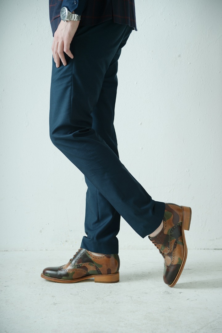 カモフラ柄のレースアップシューズ