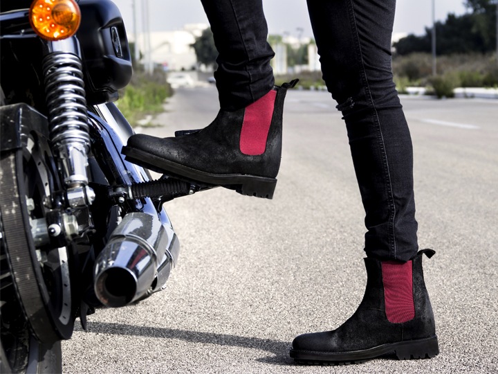 赤映えるチェルシーブーツ